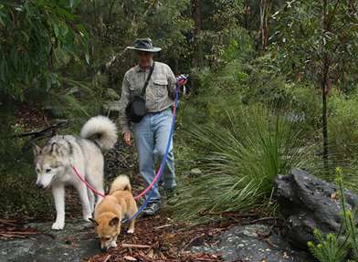 Tim enthusiastically walks almost daily, in the backyard (Loftus valley).